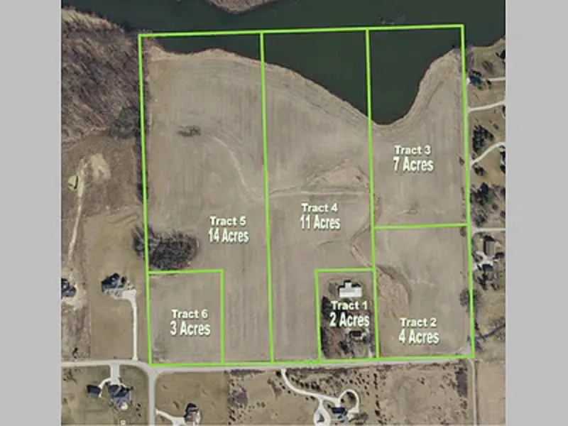TRACT 5: 14+/- Acres of Quality Cropland & Lake Frontage! Cropland has a Soil Index of 118.5! Amazing Rural Building Site! Sewer hookup potentially available.