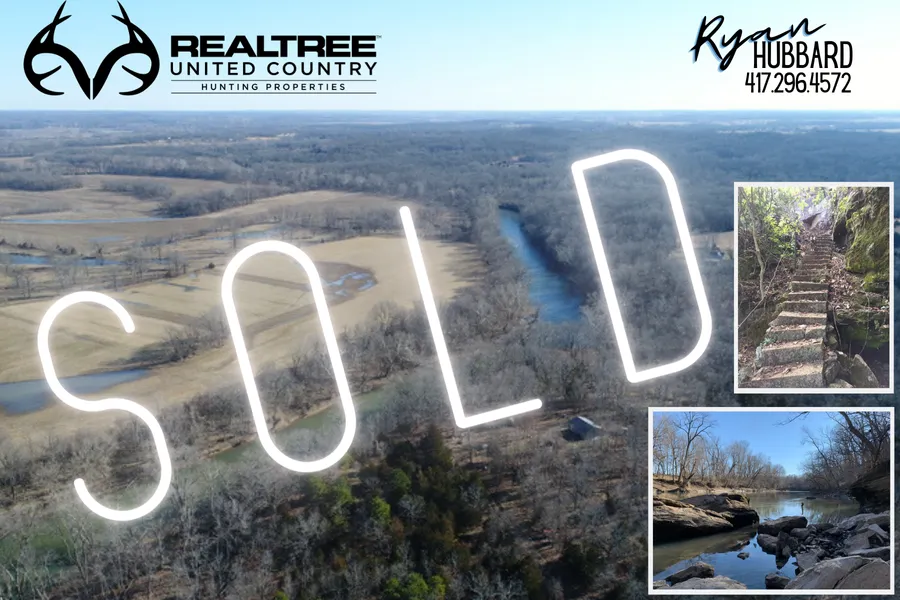 This area has traditionally been a super location for deer hunting and turkey hunting in Missouri. Large flocks of turkeys frequently use the wooded area on this property and cross the river to the cropland on the other side. With the seclusion that the river provides as well as the crop base, the deer hunting can be phenomenal as well. To top off the outdoors opportunities, the Sac River provides excellent crappie and walleye fishing. In fact, one of the hottest fishing areas on the Sac River is located within 1 mile of this property at Caplinger Mills. At Caplinger, there is a small dam where many fish traveling up river hit the road block. This makes a great place to fish, to say the least.