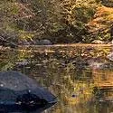 The farm has 3,400 feet of frontage along the Rocky River. The river contains both slow moving pools, riffles and an oxbow. The land within the oxbow contains a walking trail and laurel filled bluffs. A rustic cabin is located on the top of the bluff and overlooks the river.