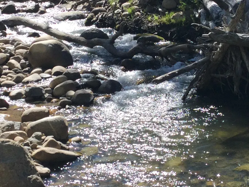 is water to pan, you are on a river! There is excellent rock formations with run off.