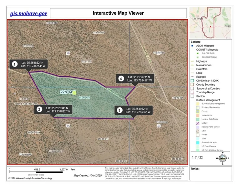 Welcome to Cedar Hills Ranches Unit 12 where rural charm meets wide-open desert beauty. This spacious 41.60-acre parcel is zoned Agricultural-Residential (AR) and offers endless possibilities to create your own desert retreat. There's no HOA, no CC&R restrictions, and no flood zone, giving you the freedom to use the land in a variety of ways. You can enjoy stunning mountain desert sunset views and star gaze every night, plenty of room for off-road adventures too! You have peaceful privacy of country living here while still within reach of Kingman amenities. You can haul your water to this property and adopt a solar environment for power, adding to the off-grid lifestyle for a quiet desert setting away from city life. The property is identified as Parcel ID# 313-89-014 in Mohave County; buyers are encouraged to verify zoning and intended use with the county to make sure it works for your plans. Come take a drive to see if this area feels like home. GIS map and coordinates 35.22369, -113.71293 are included in the photos. Property is in a mountainous area, vehicle with good clearance is recommended.
