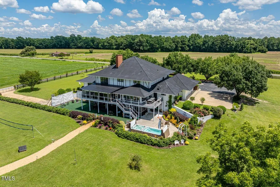 Clear Creek Farm is more than a home-it's a destination. A rare, gated sanctuary surrounded by lush greenery, this luxury estate blends timeless Southern charm with refined modern sophistication, creating the perfect setting for living, entertaining, and celebrating. Inside, soaring vaulted ceilings, dual kitchens, and a dramatic see-through fireplace make an unforgettable first impression. The flexible floorplan offers multiple gathering spaces, a main-level primary suite, spacious guest bedrooms, and a fully finished walk-out level designed for entertaining-complete with a custom bar, makeup studio, premium media lounge, and event-ready cold-storage pantry. Outdoors, the estate unfolds into a true retreat. Expansive screened decks overlook landscaped gardens, a stocked pond, and rolling pastures-ideal for weddings, reunions, or private getaways. Guests will enjoy their own charming cottage, while dedicated RV hookups add convenience for large groups. Thriving orchards, a professional-grade greenhouse, and lush fenced pastures support agricultural pursuits, while the impressive barn-workshop and equestrian infrastructure make this a premier horse property ready for training, riding, or boarding. The crown jewel is a spectacular illuminated waterfront ceremony site with ample parking and thoughtfully designed infrastructure that supports seamless event hosting. Every detail has been crafted to balance functionality with serene luxury. Whether you envision a boutique bed & breakfast, a sought-after wedding venue, a luxury Airbnb retreat for family gatherings, or a world-class equestrian estate, Clear Creek Farm offers unmatched versatility-all within convenient reach of RDU International Airport. A lifestyle of elegance, hospitality, and possibility awaits!