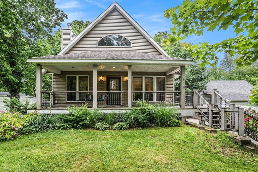 This 4-bedroom, 2-bath home is in a great spot just minutes from Lake Michigan, Silver Lake, and the sand dunes. Inside, you'll find a stunning two-story fieldstone fireplace, custom hickory kitchen cabinets and a cozy covered porch and patio-perfect for relaxing or entertaining. Plenty of space here for summer fun and all-year-round adventures at Silver Lake, both inside and outside. The garage, built for dune toys and outdoor gear, measures 18x24 with an extra 24x24 addition. Beautifully landscaped with a patio and deck, it's ideal for outdoor living, and evenings around the fire pit make for some awesome memories. Currently being used as a short-term rental if you're looking for that passive income to offset your vacation home costs. Being sold fully furnished for an easy transition.