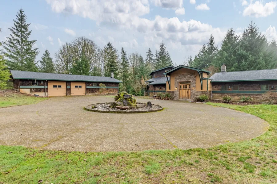 26 acres of privacy and seclusion with valley and mountain views. Clssic craftsman home with layered stone and shingle exterior offers main level living and primary suite upstairs. Hickory cabinets throughout and stacked stone fireplace and columns accent this woodland retreat. Open kitchen/dining/family room floor plan. Kitchen features high arched ceilings, large bay window with view of the woods, loads of cabinet space, 2 separate eating bars, hardwoods and french doors to the back deck. Older, multi-level deck wraps around the entire back of the home. Detached 2 car garage with attached studio/office. 3 bay 1,584 square foot shop with one door RV height and one pass through bay. Lots of yard space and creek running through property. New roof and chimney on both home and detached garage in November 2024. A wonderful opportunity for your own private retreat.