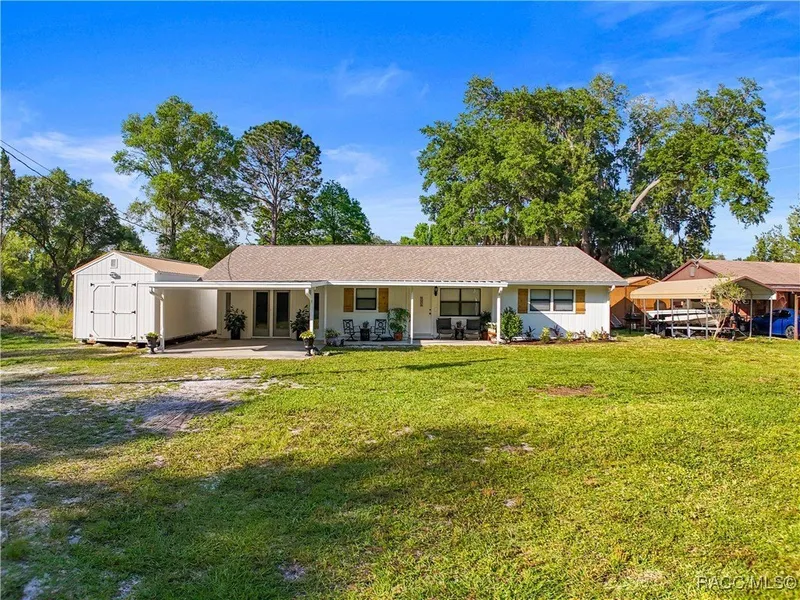 Motivated seller! Large double lot for over 1/2 of an acreLocated on a canal leading to the Tsala Apopka chain of lakes. Stunning waterfront property with breathtaking views. And if that doesn't get you the inside will. Tons of space in this very cozy home where just about everything is newer. Newer roof, HVAC, flooring, hot water heater, and drainfield. Complete renovations on the kitchen and both baths. Beautifully decorated this one of a kind home offers a full bath in the guest bedroom. Open floor plan. Finished garage currently being used as an office space and den could be easily converted into a third bedroom or game room. Imagine cooking in this luxurious kitchen with a view of the water, brand new stainless steel appliances, white wood cabinets, quartz counter tops with a butcher block island that seconds as a breakfast bar. The master bedroom has a master bath with white cabinetry, walk in shower, soaking tub, a granite countertops with double sinks and a large walk-in closet. Lots of closets. Indoor laundry with room for storage. Dramatic lighting with new chandeliers, fans and recessed lights. The wood beamed ceilings in living, dining and family room also add to the warmth and charm. Gorgeous views of the water from the living room and the walk out wood deck to get a closer look and enjoy the tranquility of being on the water. Not close enough? How about hopping on your boat from your own dock and taking a trip to the lakes. 2 convenient sheds one out back and another 12x28 storage building both with power. Easy to get to 200 and 491 for all your conveniences. The extra lot still has a well and septic on the property if needed (condition unsure of and will need updating) and is cleared ready for you to do whatever you would like, the possibilities are endless. You won't want to miss this opportunity so be sure to call now.
