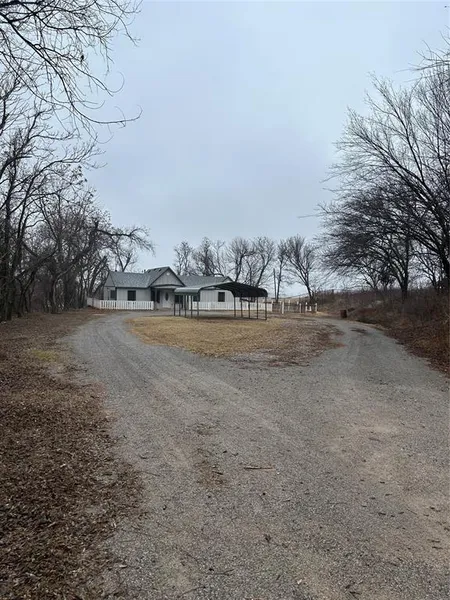 Welcome to the quiet country home you've been waiting for! This 3 bedroom, 2 bathroom home is nestled amongst mature trees and abundant wildlife. It's the perfect peaceful retreat! The large circle drive offers plenty of parking, while the carport provides protection from unpredictable Oklahoma weather. The open concept living room, dining room and kitchen are ideal for entertaining! Of the three bedrooms, one has an ensuite private bathroom, with the second bathroom being just at the end of the hall off the laundry room. Basement access can be found in the second bedroom on the left, please use caution when entering! Call today to schedule your showing! Buyer to verify all information.