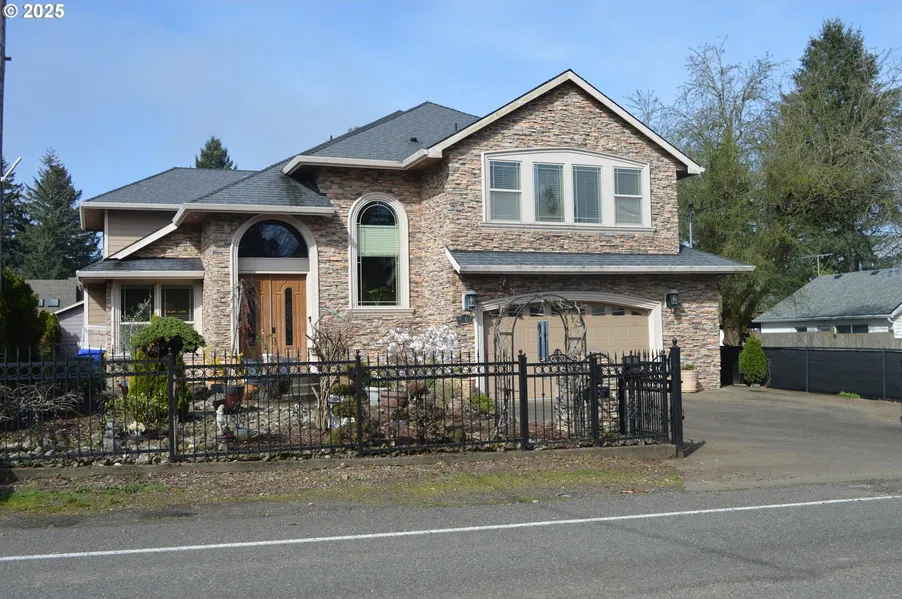 This meticulously maintained home offers the perfect blend of style, comfort and convenience. Custom built stepping through the front door, you're greeted by an expansive foyer that leads to an open and inviting living area filled with natural light. High ceilings and large windows create a sense of airiness throughout. Cozy up by the fire in the open living area that is a perfect place for relaxing or entertaining. Chef's kitchen features beautiful cabinetry, stainless steel appliances, a spacious island, and a convenient eat-in area. Whether preparing meals for the family, this kitchen is sure to be the heart of the home. Adjacent is a formal dining room, full bar and sink ideal for family members enjoy dinner together. Adjacent with huge family, eating area with sliding door to cover patio. A luxurious master suite offers a private retreat with heated tile floor, double walk-in closets, and a spa-like en-suite bathroom with a soaking tub, dual vanities, and a separate shower, and more. Three additional well-sized bedrooms provide plenty of space for family, guests, or a home office. Two master bedrooms each level with luxury suites or a den with luxury suite. Fully fenced with RV parking. Cover patio perfect for outdoor dining and entertaining. Parkrose area with easy access to major roads, shopping, amenities, and Portland International Airport.