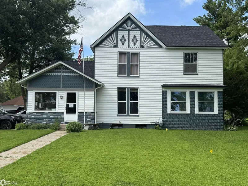 Step in to this 2 story home and explore the space it has for all of a family's needs or room to grow into. It offers 4 bedrooms, one on the main floor. One non conforming bedroom just off of the living room. Each level has its own full bathroom with the laundry being in the main level bathroom. The eat in kitchen has a peninsula with bar seating for when you're entertaining additional guests. Home has most original woodwork still in excellent shape. Home is strictly on well water with the possibility of being connected to city water. Roof new in 2023. Nice Aluminum siding with a vinyl stone veneer wrapping around the front of the house. House has a heated 2 car detached garage with partially finished attic above it. Call for your showing today!