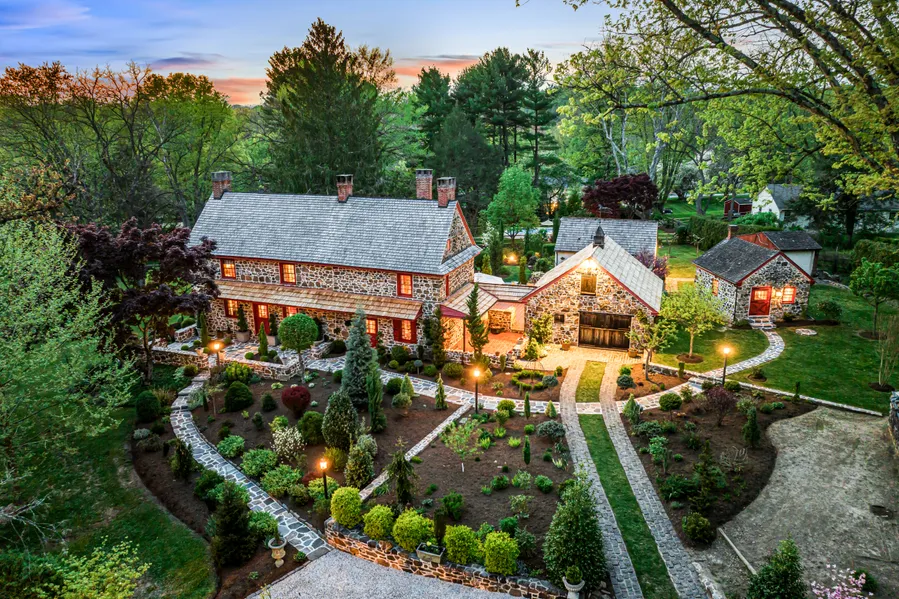 Step back in time as you enter through the gates to the impeccably restored and meticulously renovated William Lewis House, reportedly the oldest inhabited residence in Pennsylvania. Originally constructed in 1690, with second and third sections being added in approximately 1708 and 1750, it was built on a tract of land sold by Willliam Penn to William Lewis senior, a quaker who moved to this area in 1686. The current stewards have honored it's past with authentic designs and materials throughout while seamlessly integrating every modern amenity for comfortable everyday living, fabulous indoor and outdoor entertaining, privately accommodating guests and working from home. Endless features include hand crafted original restored and replicated floors, beams and millwork, European milk and linseed oil paints, custom fabricated thermal barrier-sound proofing storm windows, imported 16th century European bathroom tiles, state of the art mechanical, electric and plumbing systems with smartphone access, 7 fireplaces, graciously sized rooms including 4 bedrooms and 2 full baths, gourmet kitchen and an incredibly restored stone cellar in the main house, beautifully renovated guest house with radiant floors, private bedroom, living area and full bathroom, spacious office building with full bathroom, breathtakingly landscaped grounds with glorious gardens, expansive lawn, specimen plantings, hand-crafted brick patios and a serene pool. This is a rare opportunity to purchase and enjoy a very special and unique historical property with museum quality renovations throughout.