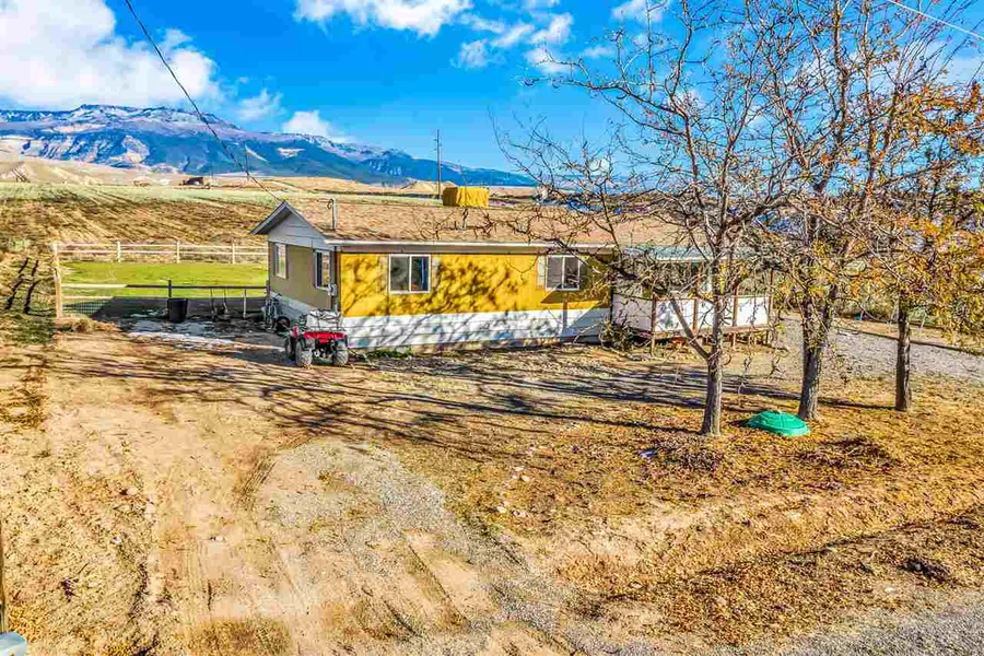 Stop by to enjoy astonishing views & peaceful solitude, just off the Fruit & Wine Byway on Palisades East Orchard Mesa. Once a peach orchard this is now in equine alfalfa. Property includes 7+ water rights acreage with a new 8" riser & gated pipe, a cozy home with many recent updates, a cinder block wall building (17 x 70) that includes a huge walk-in cooler with updated 220 electrical panel. Adjacent to the south is an easement accessing BLM just a couple parcels away a recreators dream! 2x6 exterior walls; recent updates include flooring, appliances, lighting, electrical, paint & bathroom upgrades. Additional updates include a tankless h\w heater, Breeze air cooler, roof, flooring & kitchen cabinets. AFT zoning allows for many possibilities with this one-of-a-kind property. Motivated Seller, Bring all reasonable offers.