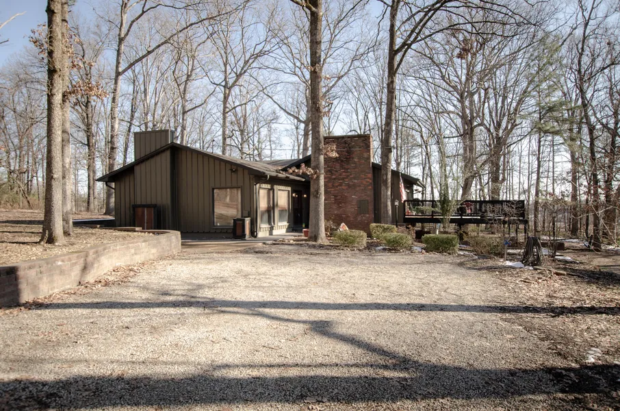 With 3 fireplaces and all the cozy cabin vibes, all that's missing here is a blanket and your favorite book! Tucked away on 1.78 tree-filled acres in Jonesboro, 4120 Forest Hill offers a serene escape within city limits. The wood and brick exterior complements the natural surroundings, while the interior offers vaulted ceilings with wood beams and a floor-to-ceiling brick fireplace in the living room. The kitchen features granite countertops, a central island, and charming brick floors and accents. You'll never want to leave the master suite, which includes a fireplace, sun room, and a luxurious en suite with a claw foot tub and walk-in tile shower. The basement provides a versatile second living area or flex space with its own fireplace and ample storage. A long driveway, outbuilding with electricity, and a partially fenced yard add to the appeal, making this home a perfect retreat.