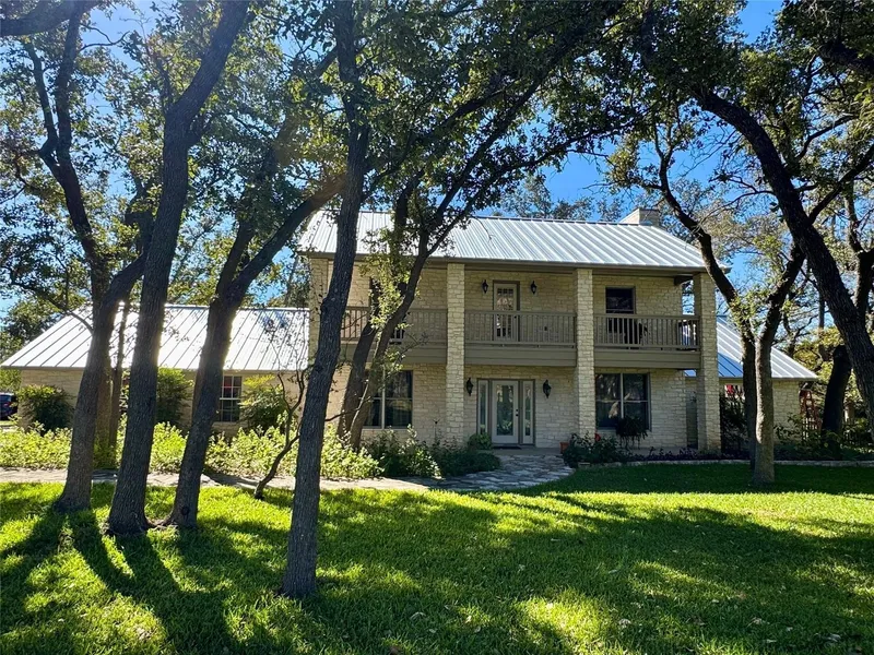 Location, Location, Location, this beautiful country home is set within large manicured oak tress and conveniently located to all that Georgetown has to offer! The paved driveway leads you to a picturesque home adorned with stone, wood accents, natural landscaping, and peaceful views. Purchase this home with the comfort of knowing the exterior was painted and the roof was replaced with a galvanized metal roof, in addition to the AC unit and hot water tank being replaced as well. Meander down the stone walkway to a private entrance into your living room where you are greeted with a floor to ceiling stone fireplace with beautiful custom built-ins. Enjoy excellent views from the country kitchen and breakfast area, and move on over into your dining room for large gatherings. The primary bedroom suite on the main floor is a sweet sanctuary with coffered ceilings, a soaking tub, and a walk-in shower. Each additional bedroom upstairs offers unique touches and incredible views, plus upstairs access to your beautiful balcony in the tree tops. Enjoy the oversized 2 car garage and ample additional parking providing convenience and practicality. The backyard features large trees, stone walls, wire fencing, and cross fencing, to accommodate animals. This incredible property seamlessly blends convenience with country living, offering an unparalleled lifestyle in a truly magnificent setting.