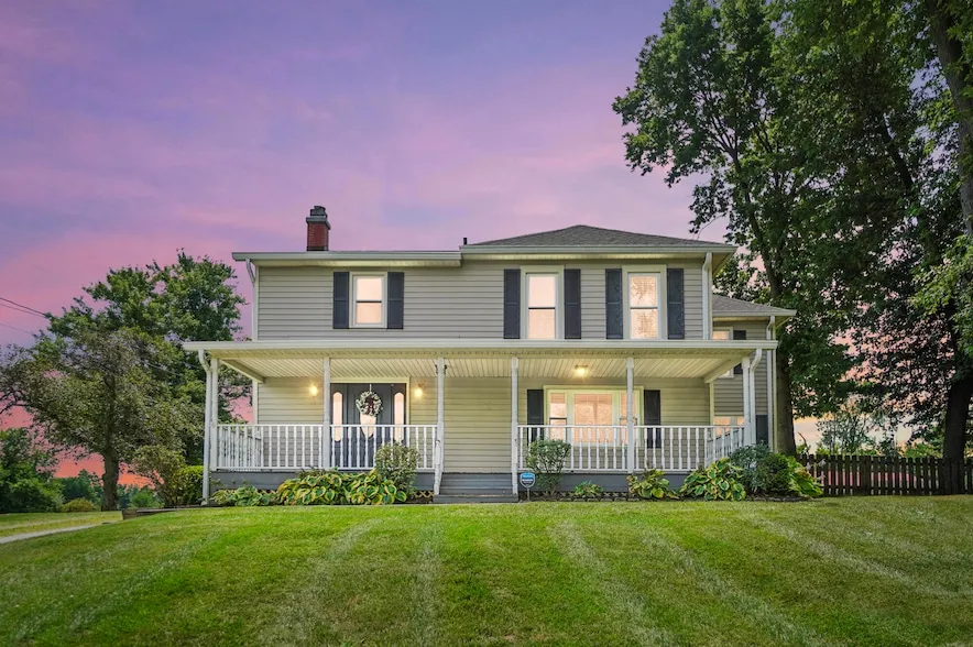 Welcome to this stunning farm home offering over 2,500 square feet of living space, nestled on nearly 8 acres of picturesque land. This charming residence features four spacious bedrooms and 2.5 beautifully updated bathrooms, making it perfect for those seeking a serene retreat. Step inside to discover a large, open living room and dining room, highlighted by a cozy fireplace that adds warmth and character. The updated kitchen boasts a skylight, flooding the space with natural light, and is perfect for culinary enthusiasts. A generous mudroom with a convenient half bath leads directly outdoors, making transitions seamless. French doors off the dining room open to a fenced-in inground pool, just four years old, complete with a heater and diving board--ideal for summer entertaining and relaxation. Pool is saltwater system. Heat pump is (2025)At the back of the property, you'll find a barn designed for your farm animals and an additional outbuilding offering endless possibilities for use, whether it be for storage, a workshop, or creative pursuits. Upstairs, the four bedrooms provide ample space for rest, while all bathrooms have been tastefully updated with ceramic tile, including a luxurious stand-up shower and a whirlpool tub for ultimate relaxation. Enjoy the tranquility of country living with modern updates that enhance this beautiful home. Don't miss your chance to own this slice of paradise on New Carlisle Pike!