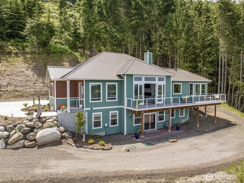 World class views from this new custom built home in a gated community. Highest quality materials and a superb design. Less than 10 minutes from downtown Sequim, views include the Cascades, Sequim and Discovery Bays, Mt. Baker, Whidbey, and San Juan Islands, Salish Sea and Canada. The quality of the home is extraordinary: 10 and 12 foot ceilings, quartz & granite counters, h/w & tile floors, Starlink internet hardwired w/Cat 5 & coaxial cable. Primary BR and BR 2 on main level. On 4+ acres of total privacy!