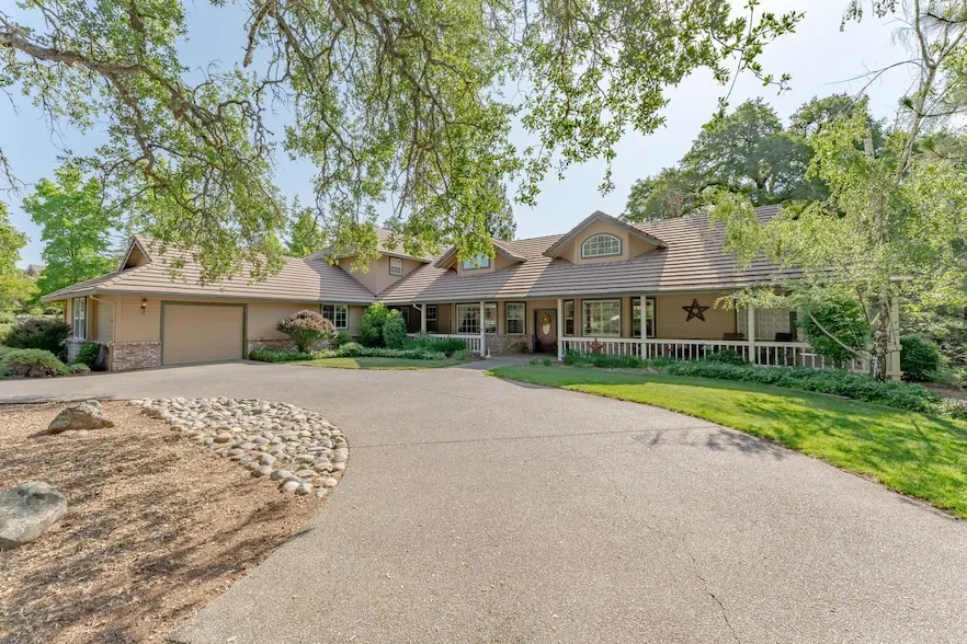 First time on the market! This beautiful Ranch Style Custom home is located in the highly sought-after Hacienda De Estrelles neighborhood. Spanning just under 4000 square feet, this home is designed for comfort and functionality, featuring 6 Bedrooms and 4 1/2 Bathrooms. The home predominantly lives as a single story, with a thoughtfully designed second story showcasing a Bedroom, a Full Bathroom, and a spacious Flex Room. The cozy family room, complete with a brick wood-burning fireplace and a striking cedar paneled vaulted ceiling, flows seamlessly into the kitchen and breakfast nook, making it the perfect space for family gatherings and entertaining. Throughout the home, you'll find custom Red Birch Cabinetry that not only enhances the aesthetic but also provides ample storage. The front covered porch overlooks a magnificent giant oak tree, which stands as a centerpiece in the circular driveway, adding to the home's charming curb appeal. Step into the serene backyard where multiple peaceful spots invite relaxation or entertainment. The landscaped outdoor areas are designed to provide tranquility amid the natural surroundings, making it an ideal retreat. The community amenities, include a pool, recreation room, and sports courts. So much more to mention! Come check it out