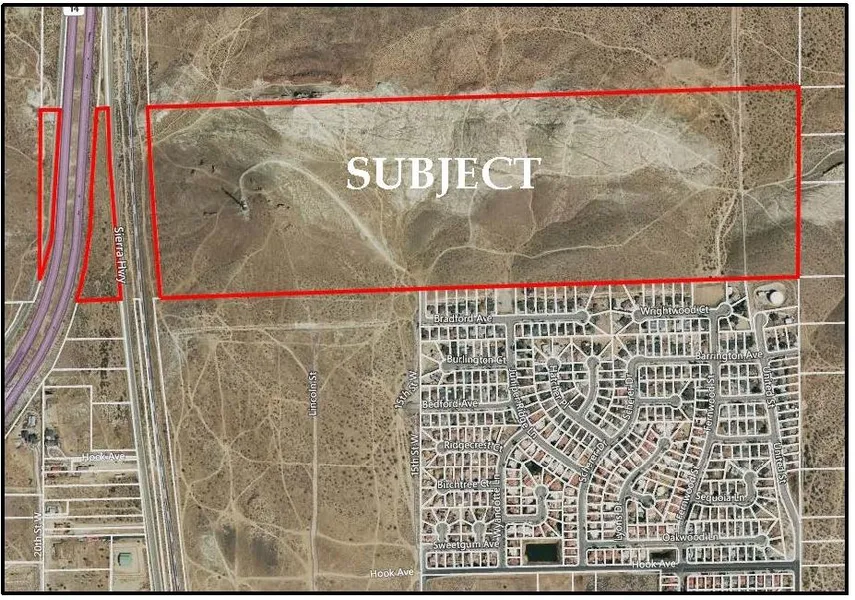 Located north of Rosamond Blvd, adjacent to Highway 14. Investment / future development opportunity. Zoned for 2.5 acre lots. Potential large lot subdivision, mobile/manufactured home(s), recreational uses, alternative energy, investment, and more! Mixed topography with incredible valley views! Priced to sell at $3,500/acre!