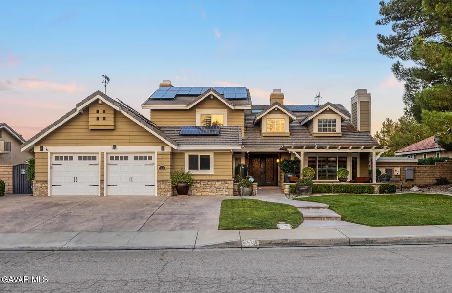 Welcome to this spacious West Palmdale home featuring 5 bedrooms, 3 bathrooms, and 2,815 sq. ft. of living space on an oversized 12,196 sq. ft. lot. Step inside to soaring high ceilings in the living room, updated flooring throughout, and an inviting open layout. The updated kitchen offers modern finishes and opens seamlessly to the family room, perfect for entertaining. The home includes two bedrooms and one full bathroom downstairs, ideal for guests. Upstairs, the primary suite boasts its own private patio, creating the perfect retreat. Enjoy year-round comfort with a newer central A/C system and the energy savings of solar panels. Step outside to your own backyard oasis complete with a sparkling pool and spa, plus a large driveway providing ample parking. With its desirable location and thoughtful upgrades, this home blends comfort, style, and convenience--ready for its next owner to enjoy.