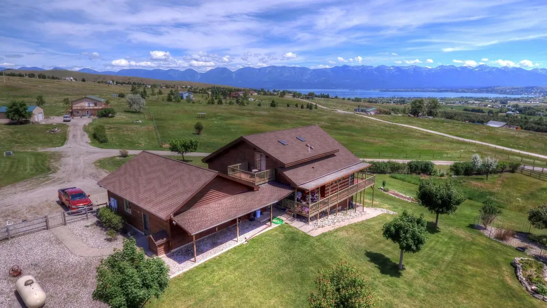 ENTERTAINERS STRONGHOLD! If comfort with bountiful abundance is your dream property, visit Sunny Slope Retreat. This special 10 acres is home to a 3 year new grape vineyard, fully fenced & producing fruit orchard, 3 ample livestock pastures w/shelters, an organic free range chicken-cooped area, an 18' x 24' climate controlled greenhouse and a 30' x 40' steel building w/an 11' farm implement door. The exquisite Lindal Cedar home of 3 bedrooms, 2 1/2 bathrooms and 3,800+ sq ft of gleaming craftsmanship is triumphed only by the majestic Flathead Lake, Swan, Nine Mile and Mission valley views from the sweeping wraparound balcony. The vaulted wall of upper window treatments are remote controlled. Stunning views from the loft, living, family and exercise rooms. The gourmet kitchen w/decorative granite countertops, built-in butchers block, Viking gas stove & double electric ovens are essential comforts. A main floor master suite is a plus. The wired, split-rail fenced backyard is complete w/underground sprinklers, mature ornamental trees, herb garden, raised planters, rock rimmed flower beds, barbecuing patio and a family friendly fire pit. The home amenities include a vented basement root cellar and food pantry. Two propane stoves add firelight ambiance and a secondary source of whole house heating. A surprise craft room is perfectly situated off the mudroom and heated double garage. A truly immaculate refuge!