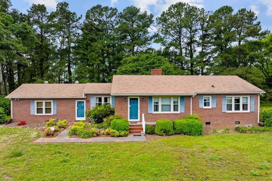 Welcome to your charming countryside retreat! Nestled amidst serene landscapes, this delightful 3-bedroom, 1-bathroom brick ranch house offers a tranquil escape from the hustle and bustle of city life. As you step inside, you're greeted by the warmth of mostly hardwood floors that stretch throughout the home, creating a cozy ambiance. The focal point of the living space is a magnificent real wood-burning fireplace, complete with a beautiful wood mantel, perfect for those cozy evenings spent by the crackling fire. The yard has room for a garden, greenhouse, and even small farm animals, this property beckons to those with a green thumb and a love for sustainable living. With a 2-car garage providing convenient parking and storage options, you'll have plenty of space for your vehicles and outdoor equipment. While this home may need some updating, its solid construction ensures a great foundation for your renovation dreams. Outside, you'll discover fig trees, iris flowers, azaleas, and majestic shade trees that provide respite from the summer sun. The large lawn area offers endless possibilities for outdoor activities and gatherings with friends and family. Don't miss the opportunity to make this idyllic countryside haven your own. Schedule a viewing today and let the tranquility of rural living welcome you home. DO NOT trespass onto property, must have a license real estate agent.