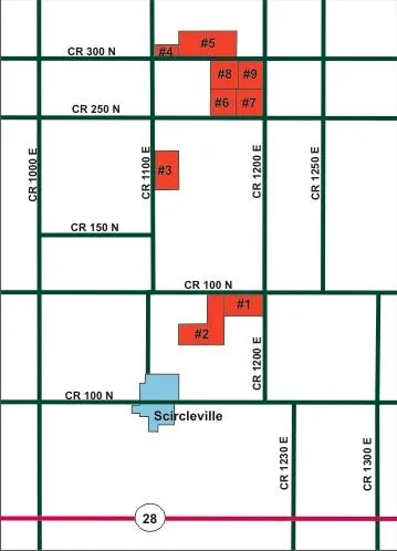 *General Location: Approximately thirteen miles northeast of Frankfort, IN on CR 1100 E and CR 100 N.