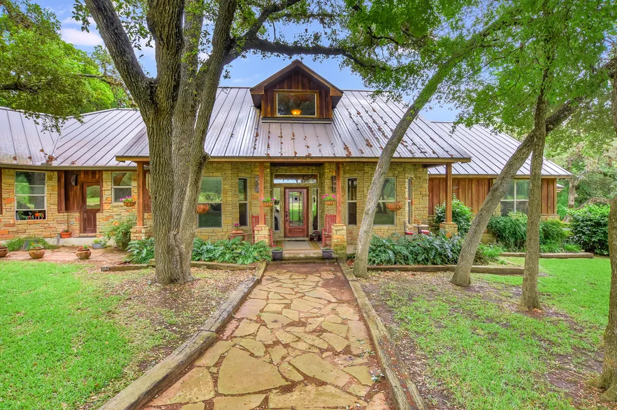 Life in the country is good! Just a few miles from La Grange but tucked in the woods, this custom home has it all. With an exterior of cypress and stacked stone, the 5bd/4ba home on 5+ acres has room for everyone. The kitchen features custom pecan cabinetry, granite and butcher block countertops, hammered front stainless farm sink, Thermador cooktop and double wall ovens, eat-in kitchen bar, walk-in pantry and adjoining dining room overlooking the park-like back acreage. Two living spaces both include a wood burning fireplace. The spacious master suite includes a jetted tub and a walk-in double shower. A sitting area is located adjacent to the bedroom wing. A separate bedroom and bath area is perfect for guests. Two office spaces give everyone the ability to work from home. Tucked away, one has a built-in desk, file drawers and bookcases and a second office/bonus room is enclosed with glass double doors. The park-like setting backs to a wet weather creek. A 30 x 40 metal building holds equipment and an oversized double garage includes a large enclosed storage room.