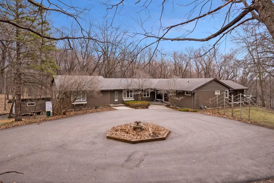 Exciting Lake Minnetonka Lakeshore opportunity with long westerly views of North Arm Bay. Beautiful sunsets. Handsome Mid Century Modern walkout rambler offered for sale for the first time in 34 years. Six acres of rolling land. Scenic tree lined drive and sparkling pond with fountain. Massive hardwoods and evergreens. Wide path that accommodates a golf cart leading to 30ft of lakeshore on North Arm Bay. An outstanding circular floor plan perfect for entertaining, connecting the foyer, kitchen, dining, living room and den. Stunning screened porch that is the heart of the home in the summer. Multi level deck overlooking ideal space for a pool. Three bedrooms on the main level including the primary bedroom with an ensuite bath and large walk-in closet. Light-filled walkout lower level with a large recreational room, office/bedroom, full bath, laundry room and substantial storage. Over-sized heated 2-car garage and custom built storage shed. Orono Schools.