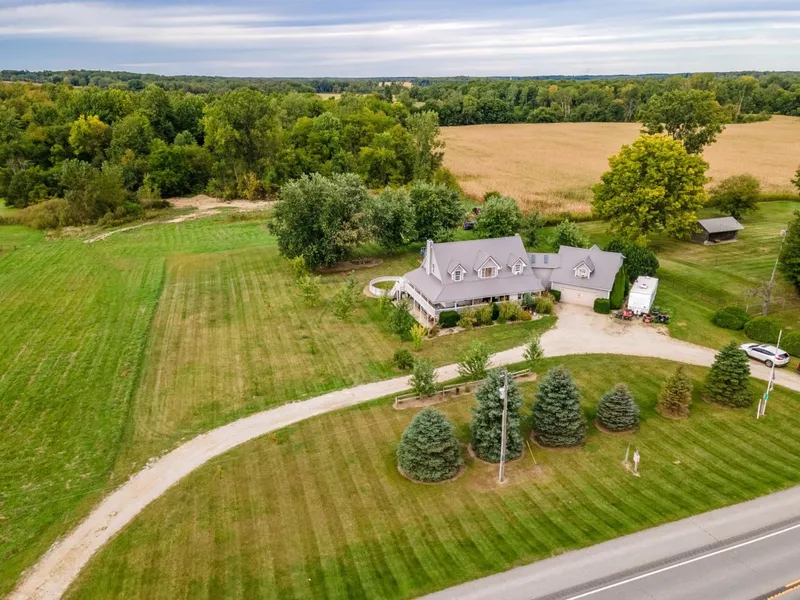 Highest and best offers to be submitted by 5pm on 10/5/22. Seated on almost 5 acres, you'll love the abundance of farmhouse charm in this 3 bedroom (possibility of 5 bedroom) 2 bath home. The inside of this home features newer flooring, cathedral ceilings in the great room, a gas fireplace and a full walkout basement. Also has an attached 24x24 garage! Lots of room for outdoor fun!