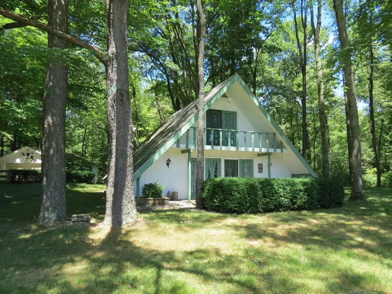 Built with Love - Private 2 bedroom A-Frame home with open floor plan, master bedroom with sliding glass door to private balcony, 2-car detached garage, and beautiful landscaping on 2 acres nestled in the woods. MLS 148426