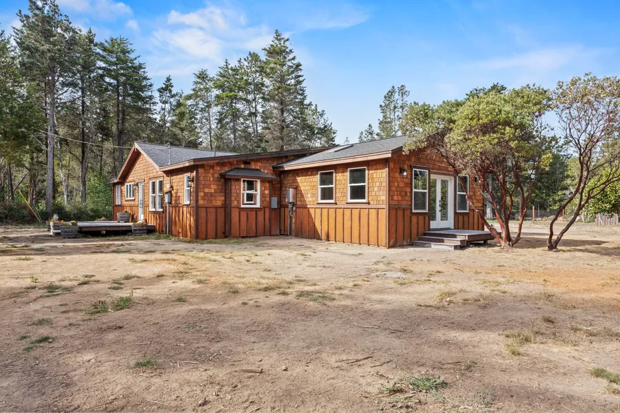 Country luxury! On 2.6 level acres, this fully remodeled home is ready for your landscaping and personal touches. Surrounded by wild rhododendruns and huckleberries, this peaceful, private location is just above the fog line and five minutes from the village of Mendocino with its shops, beaches and fine dining. The 2024 renovation thoroughly upgraded everything from plumbing, electrical, new roof, skylights, windows, flooring, sauna, decking, energy efficient heat pump, on demand water heater, and more. A great floor plan offers flexibility with two master suites, and a bonus office space currently being used as a fourth bedroom. The outdoor amenities include a fenced vegetable garden, fruit trees, chicken palace, two stall barn, and ample room for RV parking. A short walk to Jackson State Forest or the Big River Haul Road with miles of mountain biking trails. The two car garage includes a large shop area and finished bonus space that could be used as an art studio or home office. An ideal combination of close proximity to town with sunbelt weather and privacy.