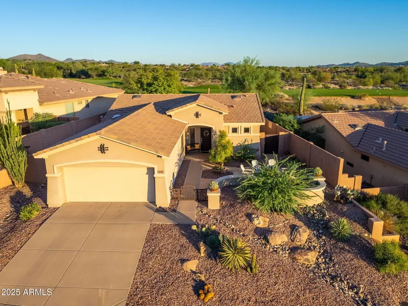 Impeccably maintained, highly upgraded GEM in guard gated Anthem Country Club on a golf course lot! The heart of the home is the open chef's kitchen, featuring staggered-height, soft-close cabinetry, Viscount White granite countertops and new stainless-steel appliances. There is a new 2023 AC, new high-quality Renewal by Anderson windows, and a new 2024 roof totaling $50K in value, ensuring comfort, efficiency and peace of mind for the lucky new buyer. Outside, the shaded, private patio is a wonderful place to relax or entertain. Experience luxury living with two champion golf courses, tennis, pickle ball, two heated pools, a state of the art fitness center, casual & fine dining! Perfectly combining style, function and turnkey this offers the complete package for today's discerning buyer