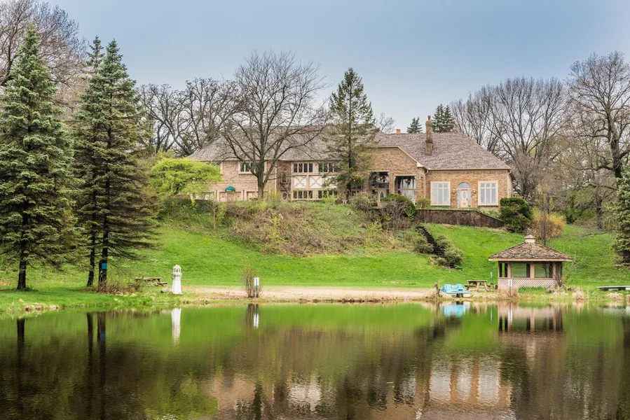 Major Price Reduction - 50K. Incredible Opportunity - consider as business or restore to originally magnificent estate! This once incredible home located on 14 acres with a 3+ acre pond has been converted and is currently operating as a church. This grand home with approximately 8000 sf of living space offers incredible features from the original estate including hand carved cherry doors, ceiling beams in the opulent great room with 17.5 ft ceilings height, structure for once 6 car attached garage and enormous open kitchen with double oven, Bosch 5 burner cooktop, 1 each full sized Subzero refrigerator and freezer. The pond is stocked with an aerator system and is 18 ft in depth. The property includes a spacious caretaker home (41W390), 2.5 car detached garage, pasture area ideal for horses and spectacular landscaping. If considering for business use, please contact Kane county to determine requirements for proposed usage. The possibilities are endless for this very special property!