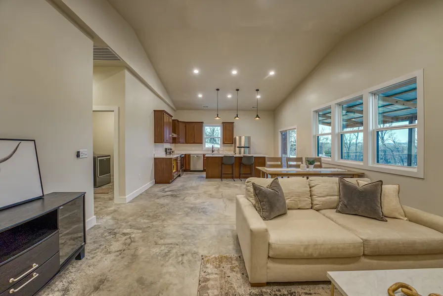 This stunning tract offers an epic home site with a custom barndominium, horse barn, quality fencing, and breathtaking views of the rolling Ozark hillside. This property is located just 1 mile outside the community of Alpena, AR, and is accessed by a paved county road. As you pull in, you are greeted with lush and rolling pastures comprised of native grasses, established fescue, the beauty of a barn, and some gorgeous large trees. A new driveway is built to last with fresh chat, ensuring a smooth ride home. This home is quaint, warm, spacious, and trendy, with several custom features. The open floor plan is a hit with the vaulted ceilings and ample windows. The kitchen has quartz countertops and stainless appliances. The dining area flows wonderfully into the living space, ideal for entertaining family and friends. Sealed concrete floors and neutral-tone colors will work with any dcor. The rest of the home flows very well and offers that ideal balance of roomy and functional. There are 2 bedrooms ideal for kids or guests that have large closets and easy access to the full bathroom with shower/tub and large vanity. The master suite is cozy and spacious, with windows facing the West to soak in that breathtaking sunset view of the lush mountains and valleys surrounding this gorgeous place. The master area includes a large walk-in closet, a free-standing tub, a tile shower with glass doors, and a massive double vanity. The home has spray foam insulation and high-efficiency appliances and has both metal siding and a metal roof.The barn is picturesque and boasts multiple stalls, small runs, a metal exterior, and newly renovated doors. The perimeter is completely fenced to accommodate anything you desire. As you meander up the hillsides, you are greeted with massive walnut, red oak, and white oak trees sprinkled throughout the property to add to the nostalgia and landscape. There are 3 quality ponds setting amongst the pastures as well. The star of the show is, without a doubt, the truly breathtaking vista mountain views that blanket this special part of the country. Scattered throughout the views, you find adorable homesteads, lush pastures, farms, and stands of hardwood timber that paint a picture only dreams are made of. Imagine just sitting on your covered porch and enjoying the easy and slow days of the Ozarks lifestyle while taking in the Lord's incredible creation. The rolling topography is both beautiful and usable, and currently, it supports cattle. There is also new cross-fencing and some new boundary fencing. There is an option to purchase the home furnished, this selection of brand new Restoration Hardware and Pottery Barn accessories is spectacular. Tracts of land like this rarely come available minutes from town, city water and buried electricity on site, established pasture, a beautiful barn, ponds, new custom home, and of course, the world-class views to set your soul at peace. Dont wait; this one wont last long.
