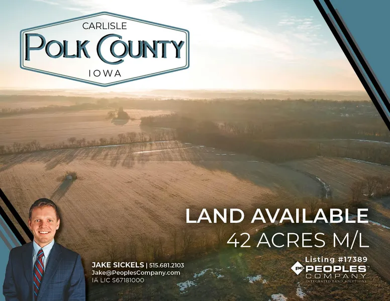 Peoples Company is pleased to present an excellent land opportunity in Polk County, Iowa - 42 acres m/l to be surveyed and conveyed, just north of Carlisle, Iowa, and only a few short miles southeast of the Des Moines Metro. This farm features attractive income production in addition to excellent recreational capabilities including whitetail, turkey, and waterfowl.