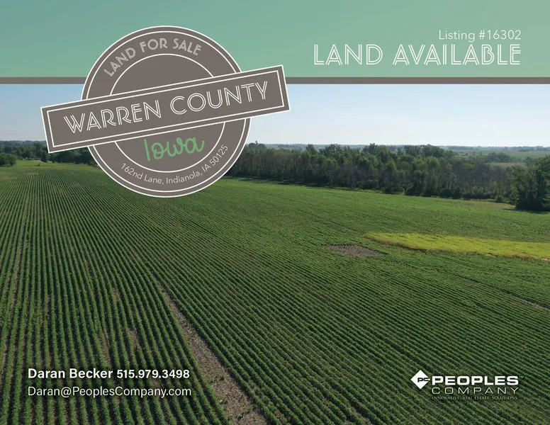 Presenting 42 acres of high quality Warren County farmland located just north and east of Indianola, Iowa on 162nd Lane. This farm consists of 40.21 tillable acres with a CSR2 rating of 83. Sharpsburg and Macksburg soils make up a majority of the tillable acres. The proximity to Des Moines would also make this an excellent building location. This farm is being surveyed off of a larger parcel of ground and exact boundaries are not yet completed. Depending on the boundary lines this parcel may include a small amount of tree CRP in addition to the tillable acres. The responsibility is of the buyer to get accurate hook-up estimates for rural water and electric.