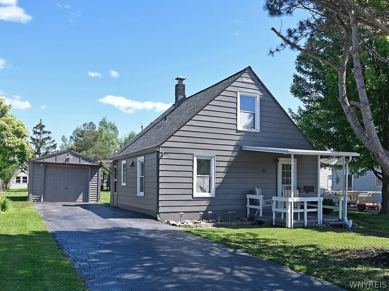 Solid and charming, 3 Bedroom Cape, 1.5 Baths, is surprisingly larger than it appears. Completely updated throughout, a nice modern touch throughout! Great open concept kitchen/Dining/Living area. PLUS! feature a 1ST floor bedroom and bath, perfect for those seeking single-level living. Some switches are wireless. Luxury Vinyl throughout. Full wall of cubby storage (hardwood flooring) all along the East wall on floor 2. Newer Mechanics. Brand new Sump Pump (inspected). Enjoy relaxing on your covered front porch, plus a very spacious fenced in backyard. Located close to shopping, the thruway, and more! Buyer to accept current Survey.