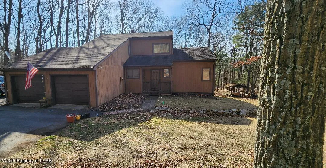 Enjoy your privacy on this 1 acre lot. First floor offers kitchen w/ breakfast nook, dining room, large living room w/ wood pellet stove, 2 bedrooms, full bath & laundry room. The master suite is on the 2nd floor. The lower level has a recreation room w/ a bar & electric fireplace, half bath, family room or additional bedroom w/ electric fireplace, & large workshop. 2 car garage. Central A/C.