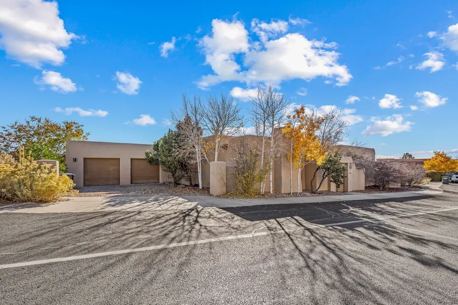 42 E. Via Plaza Nueva offers a warm embrace of classic Santa Fe style within the highly desirable community of Aldea de Santa Fe. This 2,392-square-foot residence features 3 bedrooms, 2.5 baths, and a 2-car garage, blending timeless craftsmanship with inviting indoor-outdoor living. Enter through a private front courtyard and step into a home rich with Old World charm. Brick and tile floors run throughout, complementing the carved wood beams, vigas, and hand-troweled plaster walls in the main living areas. The expansive living room feels gracious and grounded, ideal for quiet evenings or elegant entertaining. The third bedroom, with its own separate entrance and cozy fireplace, offers versatility-perfect as a guest suite or a comfortable home office with added privacy. The kitchen is appointed with wood cabinetry, a gas cooktop and vent hood, double wall ovens, and granite counters accented by tile surrounds. A cozy breakfast nook creates an inviting place to savor your morning coffee. Designed for Santa Fe's coveted lifestyle, the home's outdoor living and dining spaces are surrounded by mature landscaping and back up to open space, creating a serene setting with views to the Sandias to enjoy year-round. Located in desirable Aldea de Santa Fe, a vibrant village-style community, residents enjoy 13 miles of walking trails, extensive shared open space, a community center, and tennis, basketball, and bocce courts. Neighborhood life is enhanced further with annual art tours, community garage sales, and a variety of active clubs-participate as much or as little as you like. This home embodies the warmth, texture, and tradition of Old Santa Fe while offering the amenities of a welcoming, engaged community.