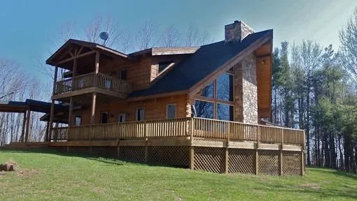 This high quality 3 bedroom, 2 1/2 bath log home features a large wrap around porch and deck. Large stone fireplace, recessed lighting, vaulted ceilings, interior and exterior balcony, hardwood and tile flooring. Features a large master bedroom with private bath. Gourmet kitchen inside as well as a great outside kitchen! Double detached garage with half bath and finished upper level that can be used as a recreation or game room. The 43 acres of wooded land makes this property a marvelously secluded retreat with easy commute to town.