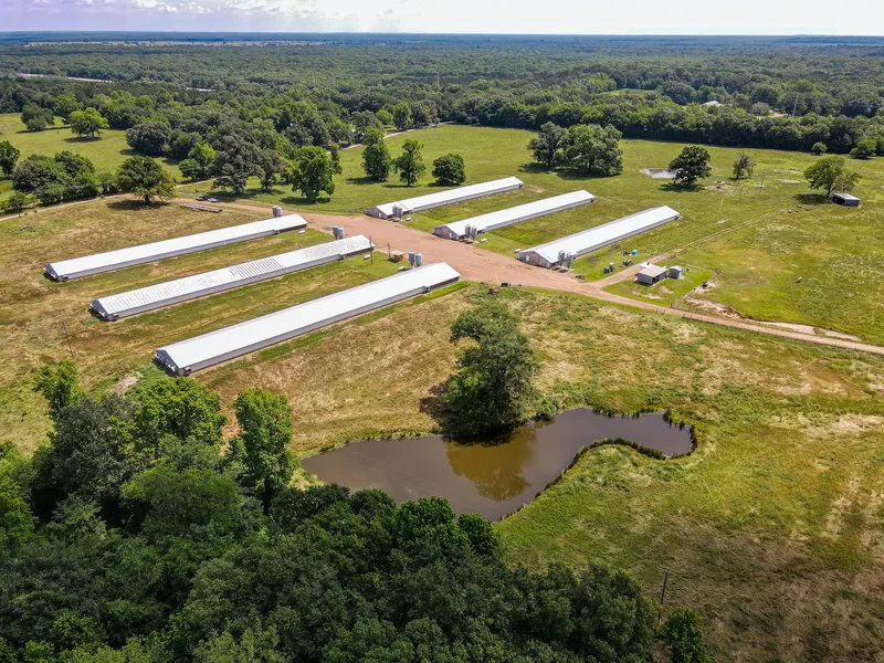 INCOME PRODUCING POULTRY FARM!! This 6 house (40x300) broiler poultry farm sits on 42.325 acres with 2 ponds and a loafingshed in Omaha, TX! Cut hay for personal use or extra income, graze cattle or build a home on this beautiful acreage! There is already ameter pole and septic! This farm is currently in production under a small bird contract with Pilgrim's. It includes an incinerator and 2freezers for proper disposal, 3 wells with county water back up filtration system and water on demand. Also, this farm has insulatedcurtains, half house curtains, turbo feeders, updated brooders & stir fans, plus a Katolight diesel generator for back up! Don't miss out onthis opportunity!!!