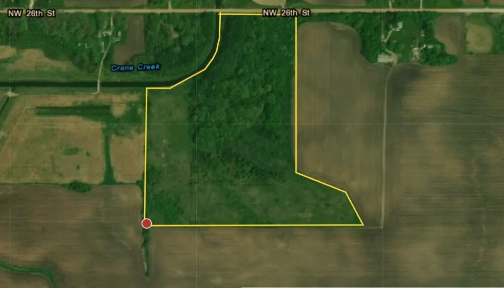 Good timing! 41 acres +/- of woods/CRP bordering Crane Creek for the upcoming hunting season! CRP includes 18.37 acres at $2,283 annual payment; expires 9-30-2018, with owner re-enrolling for one-year extension. Extension beyond that is dependent on the 2018 Farm Bill. Approximately 22.63 acres of heavily wooded hunting/rec land that borders Crane Creek will be sold with the CRP ground -- income to help offset taxes and hunting expenses! NOTE: Parcel 1 includes 96 acres +/- tillable; Parcel 2 includes 41 acres woods/CRP; Parcel 3 includes tillable and woods/CRP. Survey is in process.