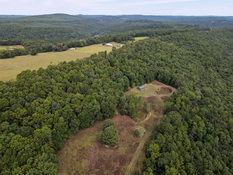 Tucked below the Ozark ridgeline along the pavement of Lo Gap Road lies this hidden gem of a hunting property. A thick canopy of hardwood timber opens into a lush, narrow pasture where, depending on the season, a lucky hunter may find a mature buck chasing the foraging does or hear the thundering gobbles of a mature Eastern tom strutting in the morning sun. The towering oak and hickory trees produce heavy mast on the property, creating an abundance of food for the wildlife that frequent the area. The abundance of game produces year-round hunting opportunities, ranging from deer and bears in the fall to exceptional turkey hunting in the spring, along with hogs and squirrels, which can be harvested year-round.