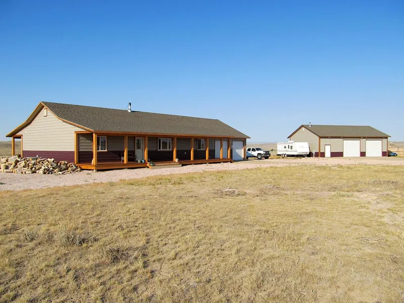 Enjoy peaceful country living on 42.78 acres with room for horses or livestock conveniently located just three miles off of Highway 18-20 between Shawnee and Orin Junction. This property features a 3,584 sq. ft. custom home, built in 2011, with three bedrooms and two full baths on the main level and three bedrooms and one full bath on the lower level. The interior of the home open, warm, and inviting with knotty pine ceilings, wainscoting, and half-log walls. The kitchen has custom hickory cabinets and new appliances. The kitchen and dining room have tile floors with carpet floors throughout the rest of the home. The attached 768 sq. ft., two-car garage enters the house though a large laundry room which has plenty of storage. There are full covered redwood porches along the front and back with beautiful mountain views off the back deck. Central air and heat keep you comfortable year-round and the wood / coal stove in the home makes heating costs in the winter extremely economical. The property has a private well and septic system. The 1,536 sq. ft. shop has two-tone steel siding, two 10 foot overhead doors, is insulated, and has a wood stove. The shop is wired with 220 electrical service with multiple outlets throughout the building along with a full RV hookup and dump station. There is a transfer switch that allows the home to be run on a generator. Price reduced from $390,000 to $375,000.