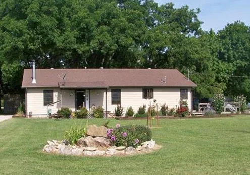 Get away from it all and enjoy farming, hunting and fishing at this secluded ranch. This beautiful 4, possibly 5 bedroom home, is well insulated with a wood burning stove to help keep winter heating bills down. Notice the colorful spring landscaping. Home has a large great room, spacious kitchen/eating area and a big utility room. There is a nice wooden deck on the north side and a two car detached garage with an insulated work space. There are fruit trees, grape vines, mature producing pecan trees and hay fields that have income potential. There is a large historical barn with a loft, silo, livestock shed and chicken coop. Bring your hunting and fishing gear! Deer, turkey and ducks are attracted to the land that is bordered by Labette Creek. This property has two ponds. The large pond has mature fish. There is a brand new storm shelter in case of bad weather.