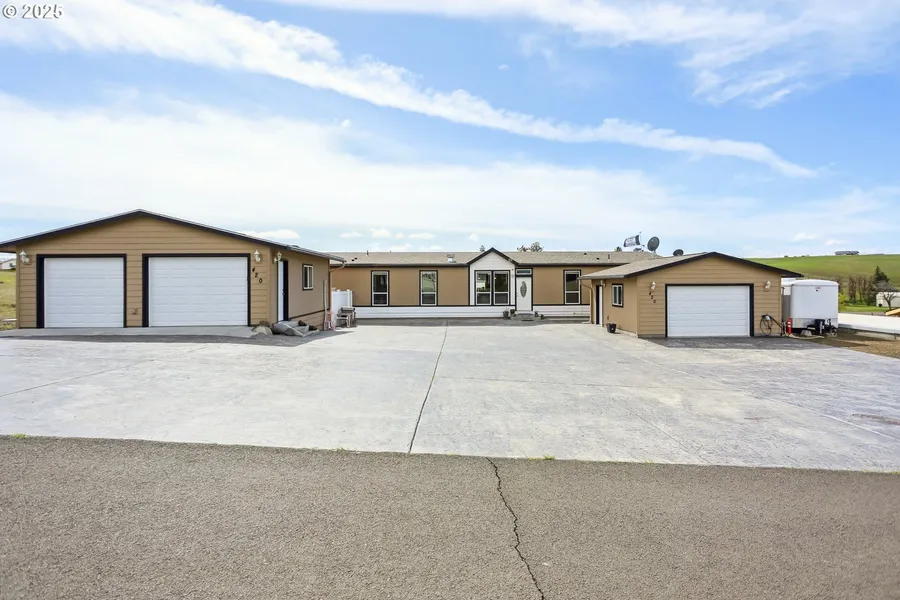 Gorgeous 1800+ square foot manufactured home with garage space galore in Wasco! 3 bedroom 2 bathroom home with lots of living space and a fun bonus room! Spacious, open-concept layout would be ideal for gatherings and entertainment! Modern kitchen and ensuite bathroom with huge shower are some of the features! Massive kitchen island and huge windows throughout. Gorgeous back deck that spans the length of the house. Two separate garage spaces nicely finished, both with power and concrete floors. RV hookups and parking with 50 amp power. The home also has leaf guard gutter systems installed throughout. Massive driveway to park all of your toys! Adorable fancy chicken coop included!