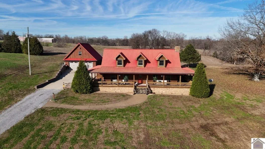 Experience cozy, country living at its finest! Situated on over 6 acres just minutes from Kentucky Lake, this dreamy log home offers the perfect blend of charm, space, and versatility. Inside, you’ll find 3 bedrooms and 2.5 baths, along with a spacious great room featuring a beautiful stone fireplace. The kitchen and dining area are thoughtfully designed and conveniently located near the utility space, making everyday living easy and functional. Step outside to wide covered porches and a relaxing patio designed for unwinding. The oversized detached garage adds even more flexibility with an efficiency-style apartment complete with a kitchenette, full bath, and gorgeous wood floors. It’s ideal for guests and also provides income potential as an Airbnb, if desired. Also on property is a 40 x 30 barn with loft space, lean-to storage, and workshop areas. With peaceful acreage and thoughtful amenities, this property is a must-see! Garage apartment used as Air BNB income statement in doc's.