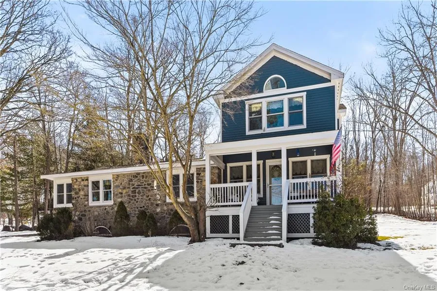 Beautiful cedar & stone home; originally a 1930 Sears cottage with a stunning 2 story addition in 2001. Greet the mornings with water views of the reservoir from your primary bedroom/bath. Second bedroom & large landing (great play/office space) complete the second story with vaulted ceilings and skylights. The first floor consists of an expansive living room with full windows and open to the rocking chair front porch and a powder room. Gleaming hardwood floors throughout. Dining room has stunning vaulted ceilings & skylights, adjoins a cozy family room with original stone fireplace. Charming kitchen with stainless appliances leads to the large stone patio and expansive back yard for entertaining. A 3rd bedroom and newly renovated bath & laundry room with ceramic plank flooring complete the 1st floor. Home situated on generous 1.75-acre corner lot. Great commuter location to highways and trains. Close to shopping, restaurants and recreation including the Putnam Maybrook Rail Trail.