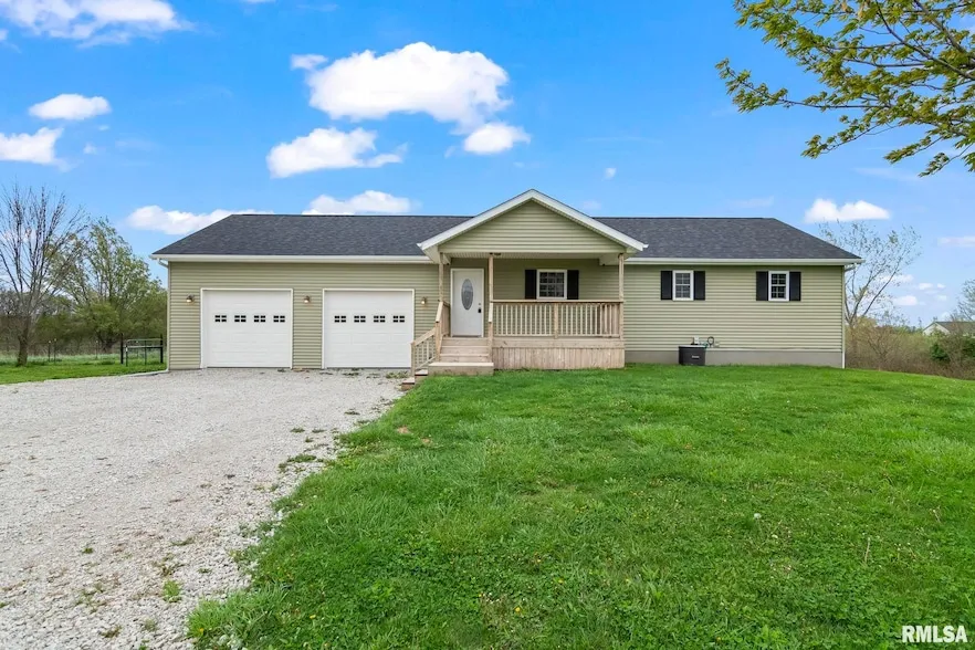 Welcome to country living at its finest! You're sure to love this well-built (2011), spacious move-in ready ranch with walk-out finished basement nestled on 5 acres! The main floor boasts beautiful bamboo flooring, an open kitchen/dining area, stunning pine ceiling in living room, new ceiling fans, master bed/bath, half bath and laundry room is conveniently located on main level. Enjoy the large back deck that's perfect for entertaining or simply relax and take in the peaceful country views! Lower level you'll find a family room with walk-out to the patio, 2 bedrooms (no egress), half bath with new flooring (2025) and plumbed for a shower, new stairway carpet (2025). Home is plumbed for Geothermal. Extra large 2-car garage with plenty of storage and a large Morton pole barn for outdoor use/storage. New roof on home in 2024. Professionally pre-inspected by B-Safe on April 8th with most recommended repairs completed by the seller for buyer's peace of mind!
