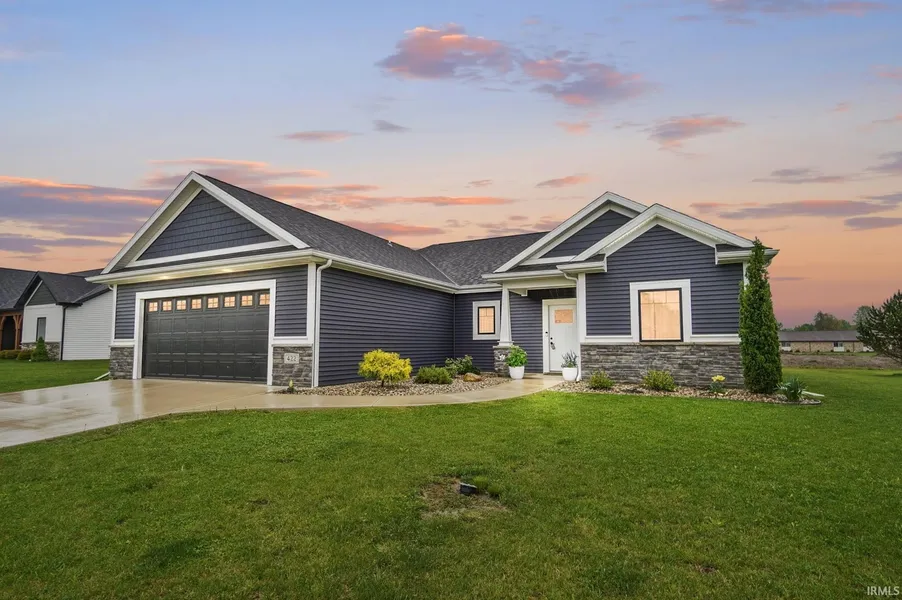 Welcome to your dream home in Butler, Indiana! This stunning 3-bedroom, 2-bathroom abode boasts high-end vinyl plank flooring throughout (carpet in the bedrooms), complemented by sleek quartz countertops and soft-close cabinets in the kitchen. Entertain guests effortlessly around the kitchen island, equipped with Samsung black stainless steel appliances. Relax by the cozy gas fireplace in the spacious living room, accentuated by tall ceilings for an airy ambiance. Retreat to the luxurious walk-in shower and unwind in the comfort of your own walk-in closet. With a spacious garage and modern amenities, this home offers both style and functionality. Finally, when the day is done and the western sun is painted in flashing glory, you can rest peacefully on your covered back porch overlooking the beautiful back yard. Don't miss the opportunity to make this exquisite property yours!