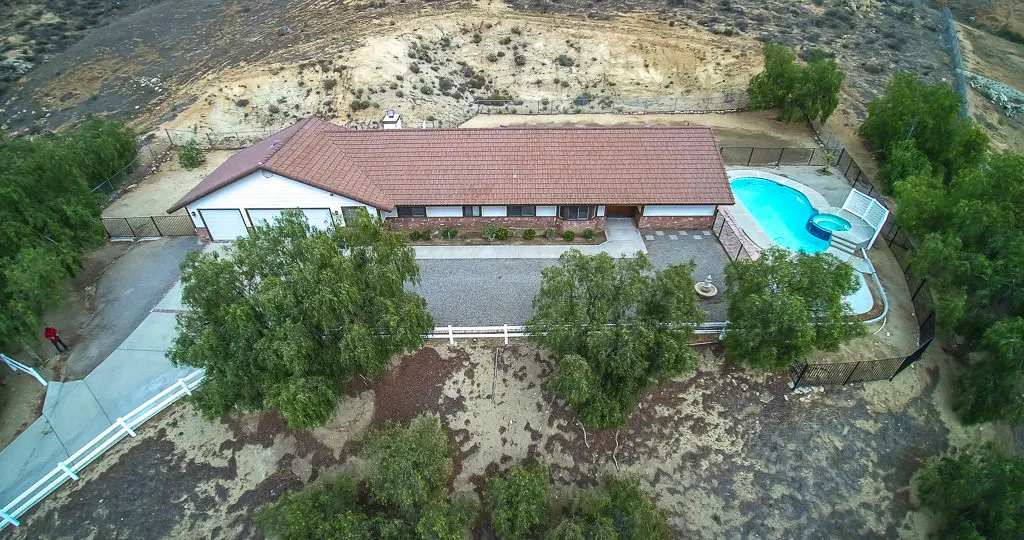 CUSTOM BUILT VIEW HOME! VERY PRIVATE LOCATION! Single story home sits on top with an amazing view of the City lights and Mountains, Horse property is below at the street. Property is fenced with gates at front. Original owner! Mature trees, large vinyl fence arena, room for horse stalls or corrals near arena, room for work shop, RV parking. Relaxing pool and spa, large fenced backyard, flat parking area at the front of the home, easy access to riding trails, near Riverbed, Ingalls park equestrian center and miles of riding trails. If privacy is what you are looking for, this is it! Home features 3 nice size bedrooms, double door entry, attached 3 car garage with insulated garage doors, large living room, formal dining room, Master bedroom and large master bath on one side of the home, the other 2 bedrooms and bath are on the other side, open kitchen with new stainless Frigidaire stove, Kitchen Aid dishwasher, stainless sink, wet bar in family room, fireplace, separate laundry room, direct access garage, Tile roof was put on in 2014, upgraded Heat and AC. Must see to appreciate the location and privacy of this home!