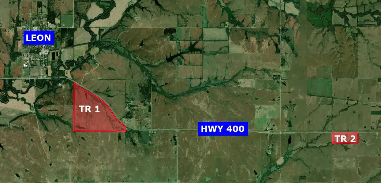 EXCELLENT GRASS, HUNTING, AND LOCATION! Properties like this dont come up for sale often. Located just outside of Leon, KS on the south side of HWY 400. This is an excellent grazing tract with very good native grasses, abundant water, good fences, and nice hardwood timber for cover. In addition to grazing, this property offers an incredible recreational aspect. The nice elevation changes along with timber lined creeks, spring water, and ponds provide for an abundant wildlife habitat. All of this off of paved Highway 400.
